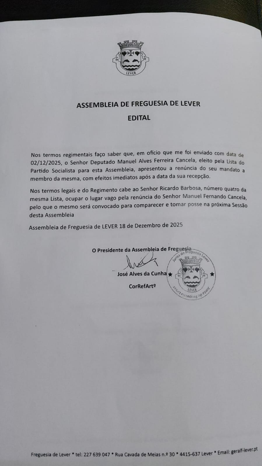 É com profundo sentido de missão e compromisso que me dirijo a toda a comunidade de Lever, assumindo a responsabilidade de conduzir os destinos da nossa freguesia neste novo ciclo. Lever é uma terra de gente trabalhadora, de valores sólidos e de um património cultural e humano que nos enche de orgulho.
