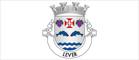 Descrição do brasão: Escudo de prata, dois peixes de azul animados de vermelho, o da dextra volvido; em chefe, Cruz da Ordem de Cristo entre dois cachos de uvas de púrpura, sustidos de verde; campanha diminuta ondada de azul e prata de três peças. Coroa mural de prata de quatro torres. Listel branco, com a legenda a negro: "LEVER".